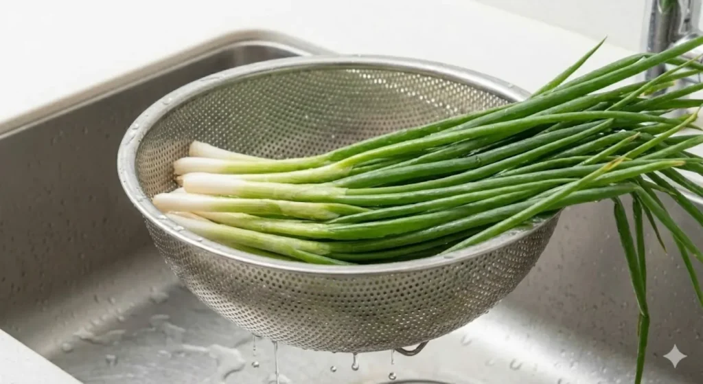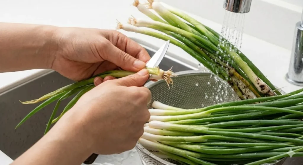 쪽파는 뿌리를 자르고 누런 잎을 제거한 뒤 흙이 남지 않도록 깨끗하게 씻어주세요. 세척 후 물기를 충분히 털어내야 양념이 겉돌지 않고 잘 배어듭니다. 쪽파가 너무 길다면 한 번 반으로 잘라 다루기 편하게 준비하세요.